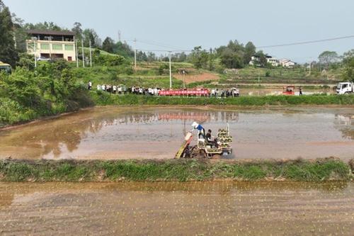 为切实做好邻水县水稻推技术、提单产工作,不断加快水稻机械化生产技术的推广应用,全面提升农业机械化水平,加快推进农业现代化发展,促进农业增产、农民增收。4月17日,广安市邻水县2023年水稻机插秧现场观摩会在袁市镇金堂村举行。各镇农业服务中心负责人、种植大户等60余人参加。