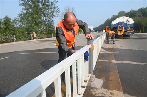 12月6日,在省道426线内江市东兴区田家镇段,区公路养护中心组织专业人员清洁道路隔离防护设施。