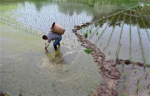 4月18日,内江市东兴区郭北镇亢家村,农民抢抓时间节点整地、插秧。