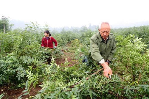 整形修剪是花椒栽培管理中一项十分重要的技术措施。过去,花椒大都不整形修剪,任其自然生长,则往往树冠郁闭,枝条紊乱,树冠内通风透光不良,导致病虫滋生,树势逐渐衰弱,产量减低,品质下降。幼树和盛果期果树宜在秋季采收后修剪比较好,弱树和老树宜在春季萌芽后修剪。广安市广安区恒升镇代龙村三年前种植的800余亩青花椒正是修剪压枝的关键时期,广安区恒升镇农技服务中心及时派出技术人员指导和组织恒椒种植专业合作社社员对花椒进行修剪压枝,确保高产又方便采摘,夯实丰产增收基础。