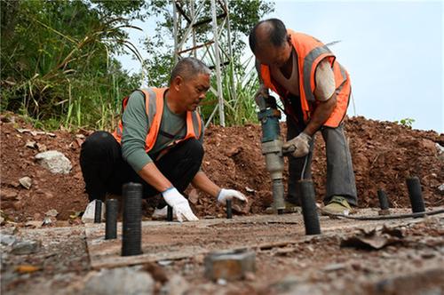 10月31日,内江市东兴区田家镇省道426线,该区公路养护中心组织专业施工人员安装大型道路标识标牌,为过往车辆导航指路。