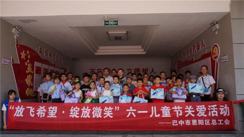 表演结束后,恩阳区总工会为40名困境儿童送来了温暖。