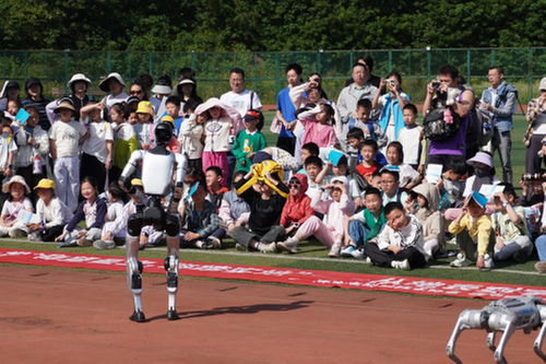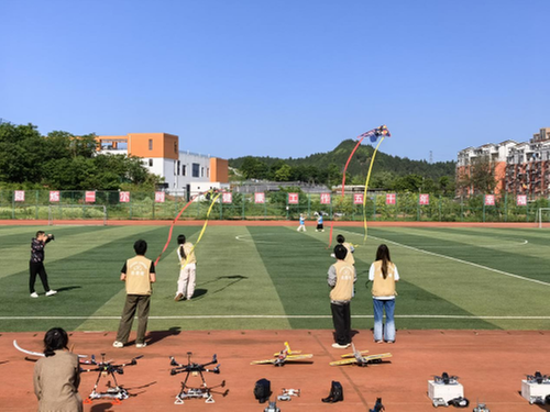 活动现场,航模展演、无人机编队表演、机器人舞等引得学生们阵阵欢呼。