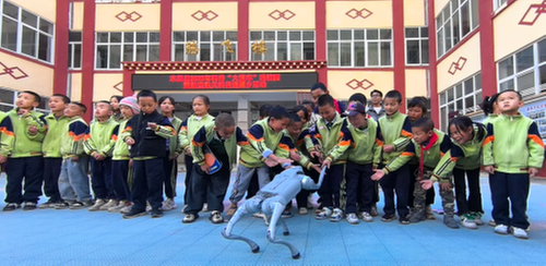 在互动环节,科普“大篷车”带来了机器人、机器狗等一批科普展品。当灵活的机器人随着音乐起舞、机器狗与同学们亲切“打招呼”时,现场爆发出阵阵惊叹和欢呼。孩子们小脑袋齐刷刷前倾,小手攥着衣角直晃,“哇”的惊叹声中夹杂着“它真的会动?”“能教我们做实验吗?”的追问。科学的种子在孩子们心中悄然发芽。