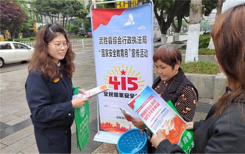 为深入贯彻总体国家安全观,增强全民国家安全意识,营造人人知晓关注、支持国家安全的浓厚氛围,近日,广安市武胜县综合行政执法局在会展中心开展了“4·15”全民国家安全教育日主题宣传活动。