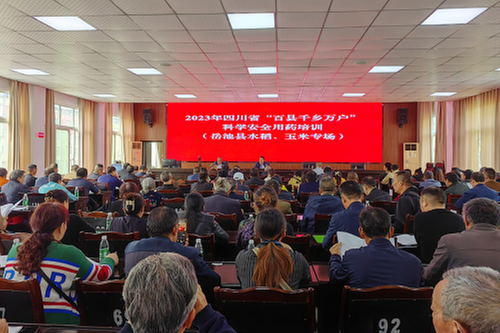 4月14日,广安市岳池县农业农村局组织开展“百县千乡万户”科学安全用药培训(水稻、玉米专场),全县农药经营者及新型农业经营主体负责人代表160余人参加了培训。
