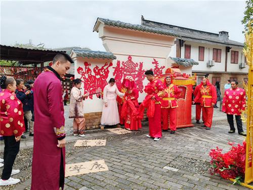 “买花西舍喜成婚,持酒东邻贺生子。”800多年前,南宋诗人陆游写下了《岳池农家》。作为中国农家乐之源,这些天,广安市岳池县正在举办第七届“岳池杯”中国曲艺之乡曲艺展演系列活动暨第十一届岳池农家文化旅游节活动,活动之一的川东传统婚俗文化展演,还原了岳池传统农家婚俗的场景,吸引了众多游客前来打卡。