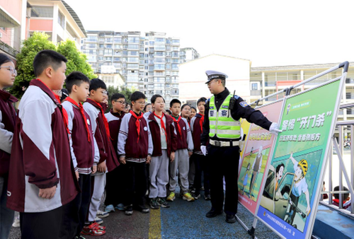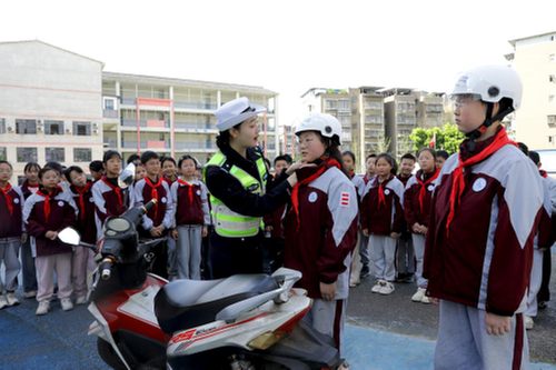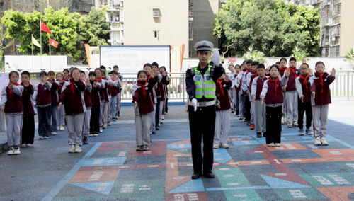 3月30日,是全国中小学生安全教育日。当日,广安市广安区富源小学联合广安区政协社法委开展“知危险 会避险”交通安全教育进校园主题活动。广安市公安局交通管理支队直属一大队交警通过警示教育视频、交通安全标志标识讲解、现场演练等形式,向学生科普交通安全知识和避险常识,提升学生安全防范和自我保护能力。