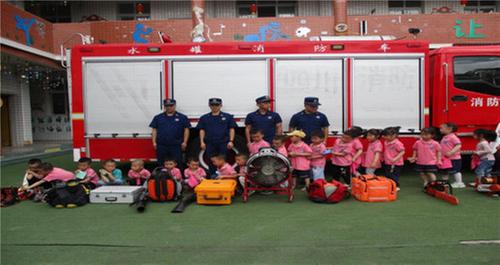 为了让幼儿更加直观的了解消防员、消防车、消防器材等。消防员带领幼儿认识消防车,用通俗易懂的语言为幼儿讲解了各种消防器材的用途、性能以及使用方法。让大家穿上消防服,参观、触摸消防器材,充分满足幼儿们的好奇心,激发他们的求知欲。