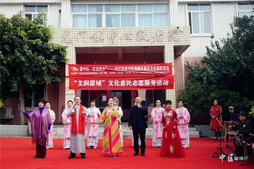 12月4日一早,在热烈的锣鼓声中,内江市市中区京剧票友协会的演员们登上简易戏台,为老人献上了京剧名段《四郎探母》。演员们精湛的表演和字正腔圆的唱腔,让敬老院的老人连声叫好,掌声、喝彩声此起彼伏。