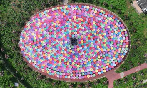 4月14日,在内江市东兴区田家镇正子村长江田园,游客在玫瑰花海中打卡游玩。