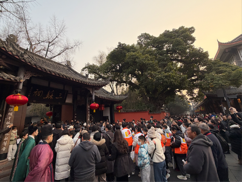 除了延续祭拜仪式,三苏祠还推出主题演出、写春联、投壶、拓“福”、猜灯谜等系列互动活动,以及全新专题片《归去来兮》,三苏祠博物馆免费为公众开放。眉山三苏祠博物馆副馆长黄建表示,今年的“寿苏会”有专门创作的演出节目,希望借多元形式的表演进一步丰富活动内容,让人们沉浸式感受东坡文化,感受流动的风雅。
