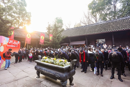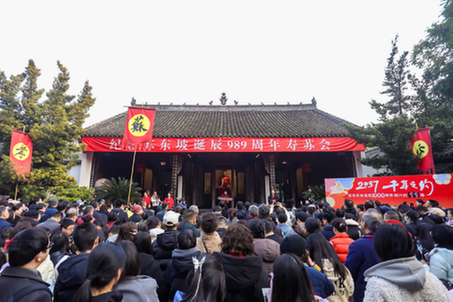 (图注:眉山三苏祠博物馆举行纪念苏东坡诞辰989年“寿苏会”现场。底伊乐/摄)