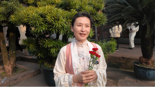 “真的特别神奇,我安排行程时还不知道,直到预约门票才发现今天刚好是东坡先生989周年诞辰。”当天,来自北京的游客黄静身着汉服,手捧三朵鲜花带着儿子来三苏祠祭拜。在她看来,这场相遇像是一次“冥冥之中的缘分”。她坦言,此行本是带儿子来川西旅行途中的一站,却意外地赶上了一场“生日会”。“苏东坡的一生起伏曲折,却总能在困苦中找到慰藉自己的方式,这种人生态度值得我们所有人学习”。