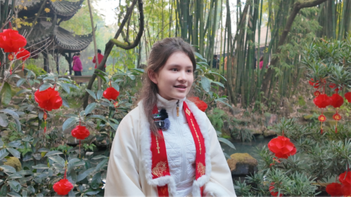 “这是我第一次来眉山三苏祠。”来自成都的14岁中国-瑞典混血女孩贺思蕊说。作为一名四川峨眉派弟子、川剧变脸演员、省级非物质文化遗产项目“宕渠双竹连响”第三代传承人,她从小就很喜欢传统文化。“对苏东坡的了解始于诗词,最喜欢‘明月几时有,把酒问青天’,因为能感受到家家户户团圆的温暖和仰望明月时幸福的感觉。”对贺思蕊而言,更深入地了解苏东坡有助于她更好地理解古意,并将情绪带入表演中,让世界了解中国传统文化。