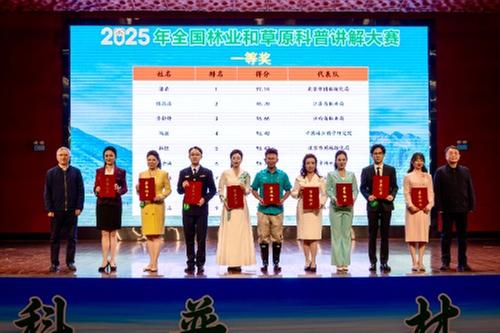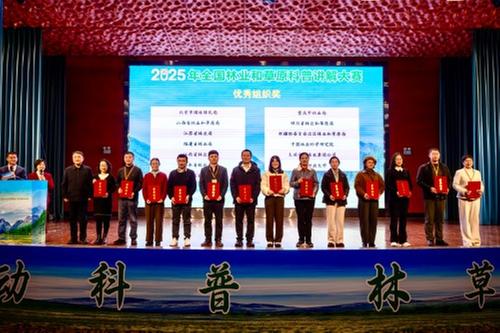 12 月 18—19 日,由国家林草局科技司主办,四川省林草局和四川农业大学承办的 2025 年全国林业和草原科普讲解大赛在四川成都成功举行。经过半决赛、决赛的激烈角逐,大赛最终评选出一等奖 9 人、二等奖 14 人、三等奖 22 人,北京市园林绿化局、山东省林业局、四川省林草局等13家单位获优秀组织奖。