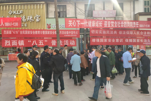 据悉,为贯彻落实国家安全宣传,早在4月14日,烈面镇在淳风广场就开展“4.15”全民国家安全宣传教育日集中宣传活动,在综治办、城管办、司法所等单位的组织下,工作人员向群众发放了《国家安全法》《反间谍法》《反有组织犯罪法》等国家安全相关法律法规宣传资料,累计发放扇子、手提袋、围裙、宣传单等各种形式宣传资料1000余份。此外,烈面镇还利用镇机关LED屏幕滚动播放国家安全宣传标语,在镇上的醒目位置悬挂国家安全宣传标语。