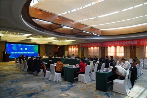 为充分展示内江市东兴区形象,让更多新疆地区的企业家和社会各界的朋友们认识东兴、了解东兴,吸引西北地区人员(人才)来我区安家就业,并结合“四川省内江市城市品质推介和精品楼盘展示西北行—走进新疆”活动,10月24日下午,“活力天冬之乡 宜居宜业东兴——四川省内江市东兴区走进新疆专场推介活动在新疆维吾尔自治区乌鲁木齐市绿洲酒店开幕。东兴区副区长胡浩出席开幕式并致辞,新疆内江商会会长何世勋、区住建局、区自规局、新疆内江商会相关同志与参展企业代表出席活动。