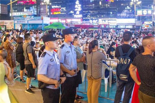 服务民生、服务经济,主动当好“夜管家”,是内江中区公安现阶段护航经济发展的重要任务,结合辖区夏季夜间治安特点,在常态化开展夜间巡逻及清查行动中,强化社会治安防控能力,切实营造出百姓看着放心、玩得安心的平安夜市环境。