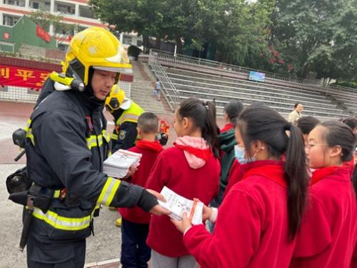 彭山区消防救援大队大队长童鹏点评了此次演练活动,他认为鹏利小学火灾应急演练过程规范,师生反应迅速且熟练。接着童鹏对该校师生进行了消防知识培训,展示了现实生活中常见的消防安全设备,介绍了它们的功能和用法。在消防战士的指导下,师生们进行了灭火器的实战演练和消防服着装体验,消防员还向学生们分发了彭山区消防救援大队编印的《小学幼儿园消防安全读本》。