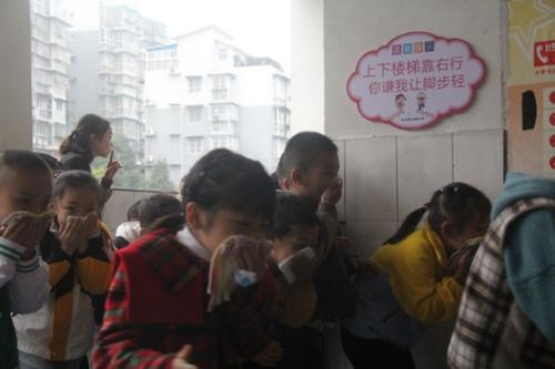 演练活动模拟早上8时30分鹏利小学六年级2班的教室里突然浓烟滚滚,随着浓烟蔓延,警报声陡然响起,班主任老师飞快赶往教室关闭电源,任课老师拨打火警电话,并协助班主任老师组织学生按照既定路线有序撤离到指定护导位置;副校长杨敏通过广播播报火情,稳定学生情绪,指导疏散要领;彭山区消防大队接警后,迅速将消防车开进校园,开展灭火和搜救工作。