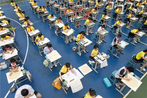 5月27日,在内江市第十三小学校园文化艺术节上,学生们正在参加现场书画比赛。