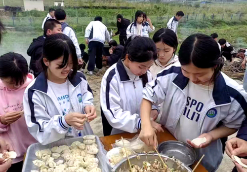 吸吮着春风花草的芬芳,行进在春意盎然的田野,孩子们用脚步丈量着不一样的课堂,一路欢歌笑语,满眼都是对大自然的亲近和渴望。往返30华里的路程,不觉漫长,搭建简易灶台,洗菜做饭,包饺子,煮香肠……昔日的娇气娃,今天把家当,各小组人人有事做,露天“厨房”响叮当。农场见习,孩子们除草松土,剪枝压条,个个学得有模有样。