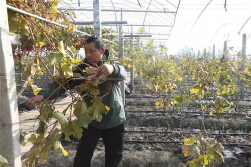 杨建华种植葡萄已有十余年,他的农场面积达30多亩,包含了阳光玫瑰、蓝宝石等10余个葡萄品种。春节假期刚过,他就在果园里做日常管理。