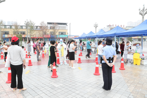 “各位老乡,疫情形势不容乐观,请保持一米距离参加核酸检测,防止交叉感染。”上午9时许,在广安区广福街道大寨社区平安公园大门口,记者看见社区干部正在维持秩序,开展劝导工作。社区党委书记李云龙告诉记者,“我们管理体制才从协兴园区调整到广安区不久,检测点位没有增加,单参与服务的机关部门党员志愿者增加了,医疗力量增强了,有了他们的参与,我们社区轻松了不少。”