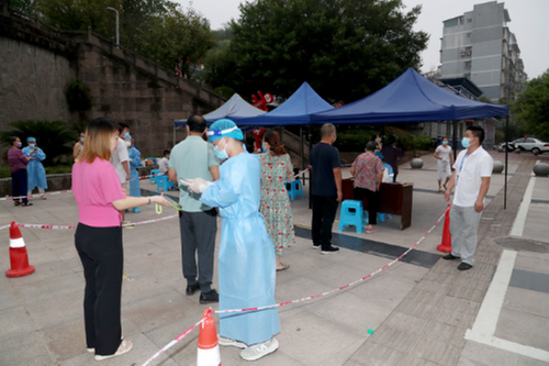 在翠屏路社区采样点,记者看见在社区志愿者和公安民警指引下,社区居民有序参加核酸检测。在现场指导核酸检测的广安区浓洄街道党工委书记蒋恒告诉记者,为了做到小区居民应检尽检,他们组织社区干部和帮扶单位的党员志愿者通过小喇叭广播、敲门逐户通知、小区微信群通知等方式,通知各家做核酸,并对行动不便的人群开展上门服务,不少干部昨晚基本没有休息。