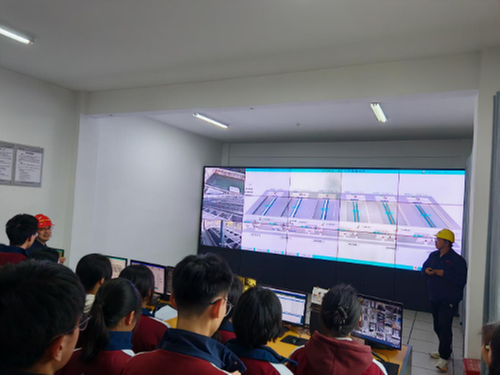 16:00,水厂生产运行部经理李春安向师生介绍了水厂作为广安市重要民生服务单位的职责,强调“安全供水是城市运行的生命线”,并提醒大家遵守厂区安全规则。随后,在工作人员的引导下,师生开启了一场沉浸式“水之旅”。