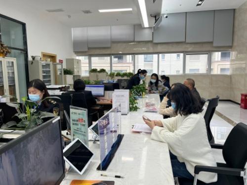 县市场监管局服务窗口,工作人员热情服务办事人员
