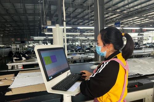 12月28日,在四川伟虎着装服饰有限公司,工人们正在进行各类工作制服的生产、熨烫等工作。