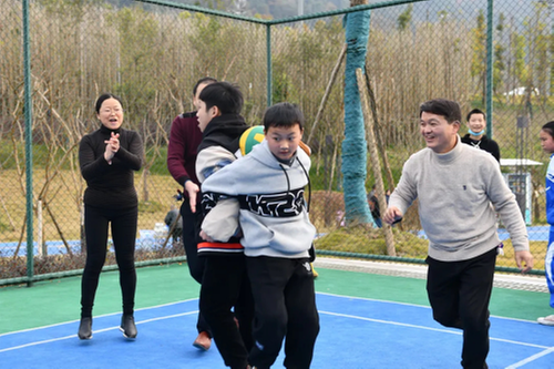 当天,40余名师生乘车来到高明湖,参加趣味体育活动,“螃蟹赛跑”、“托球10米赛跑”、“8”字接力赛,师生配合默契,孩子们笑声此起彼伏。