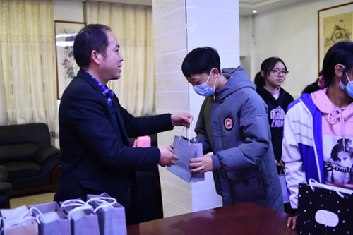 李怀昌代表学校给每个孩子送上文具和学习用品,送去温暖,送去祝福。同时东西部教育协作交流干部王庆忠给每个孩子送上爱心礼物和寄语,希望他们不负青春、不负时代,不负党和国家的期望,踏实学习,快乐生活。