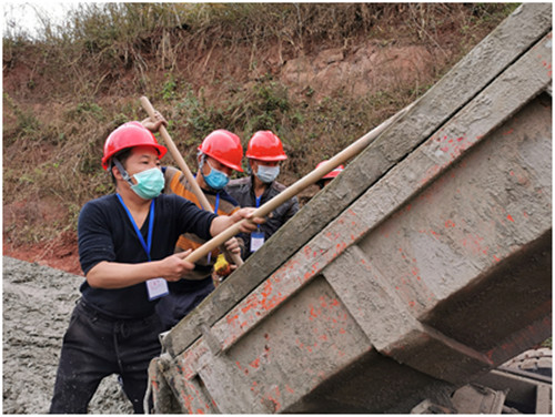 工人正在对高台镇麻柳村道路进行浇筑