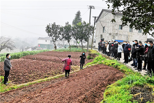 2月27日,在广安市枣山园区穿石镇学堂村7组,农技人员正为前来参观学习的镇、村(社区)干部讲解旱育秧技术要点。据悉,该镇在防疫最吃劲的关键时刻,不失时机抓好春季农业生产。