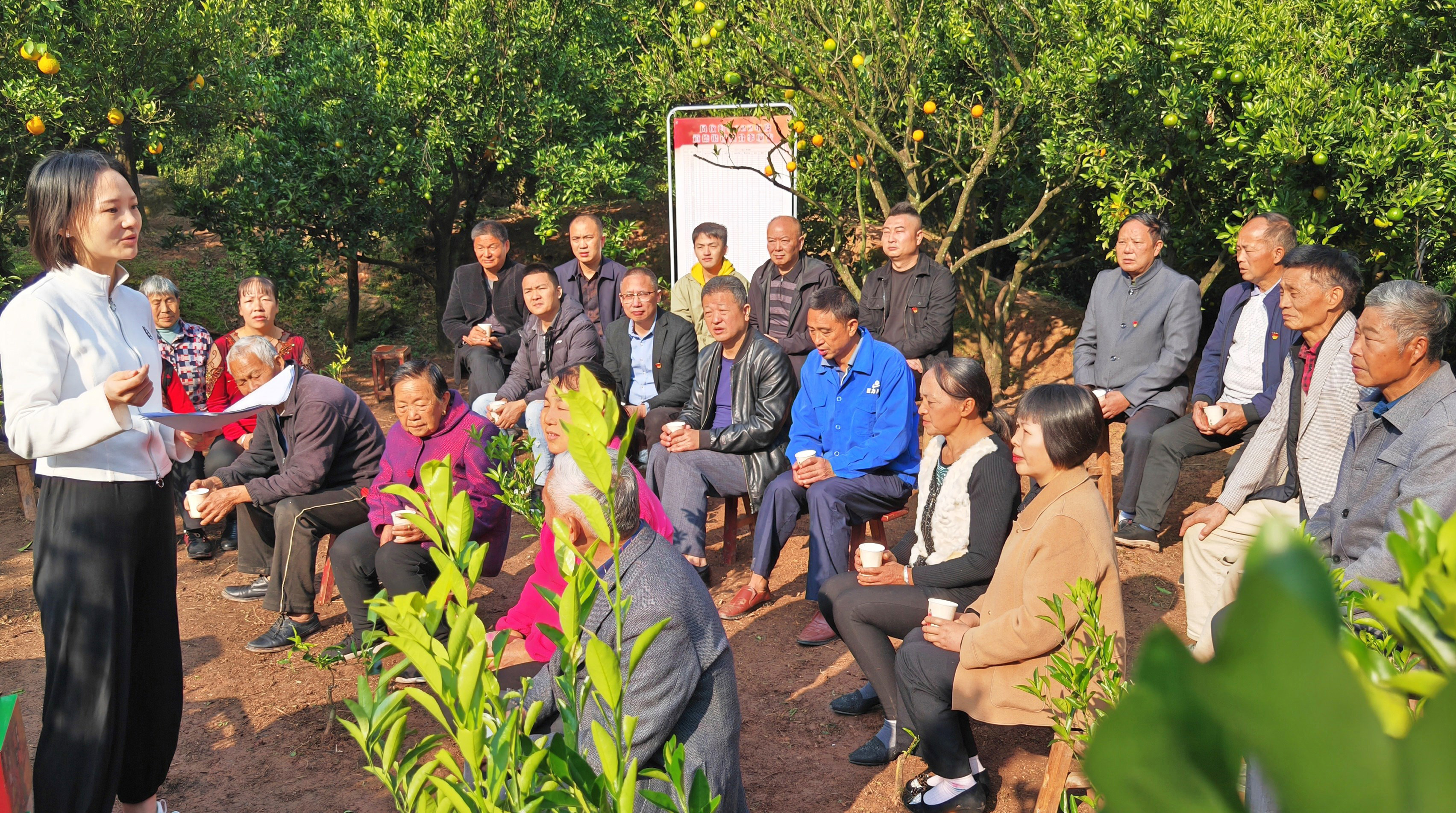 10月21日,巴中市南江县纪委监委机关干部在正直镇凤仪村柑橘产业园,利用村民种植小春农作物歇气的时间,向党员和村民宣讲党的二十大报告精神,并引导群众充分发挥民主监督作用,用好锤子、錾子、尺子、本子等“土办法”紧盯基层干部工作作风、村务公示公开、项目资金管理、惠民利民政策落实等,推动实现全过程人民民主。