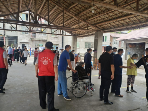 资中县科协机关党员干部服从村(社区)的统一调度指挥,按照“应检尽检、不漏一人”的原则,根据村(社区)采样点分布情况有序组织群众进行核酸检测,引导群众落实戴口罩、一米线等措施,解答群众相关疑问,为参检群众扫码登记、测温。现场秩序有条不紊,采样工作快速高效推进。