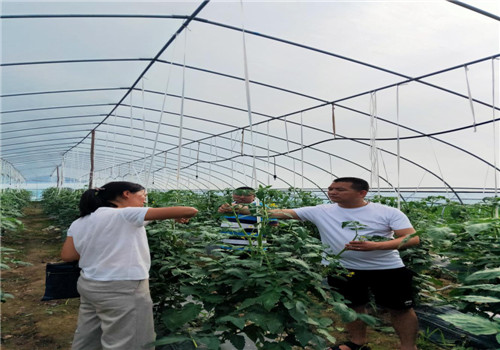据了解,齐廉大棚蔬菜种植专合社今年大棚种植西红柿20余亩,前期长势良好,陆续挂果,近来西红柿出现挂果少,叶面卷曲等病状,专家到现场后从土壤、栽植、温度、施肥、用药等多方面了解查看分析后得出该西红柿患有生理性病害,为减少专合社损失,专家建议减少疏果,确保产量,适当浇水,保持水分充足,喷洒少量钾元素肥料,经过几天的治疗取得了较为明显的成效,为专合社挽回了较大的经济损失。