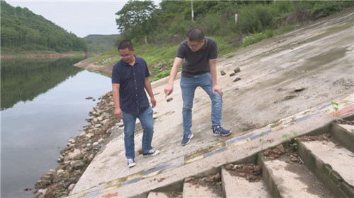 “一般在20厘米以上了我们就会及时清除一次。清理的目的主要是便于观察、渗漏、裂缝以使水库能够安全度汛。”7月3日,在谢家街道的大坝水库,管理员张述军正在对水库水位、水库卧管、大坝枢纽等逐一进行检查,发现大坝水库杂草已经超过了生长长度后立刻安排人员进行清理。