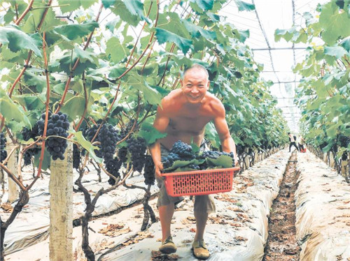 近日,位于果园村2组占地60余亩的好运来家庭农场内,农场主张雄正在开展采摘准备工作。“多亏了村党支部引导我们发展葡萄产业,现在日子越过越好了。”张雄笑呵呵地说,随着农场种植的夏黑、红富士、早峰三个品种葡萄全部上市,连日来,收购商们的电话接连不断。