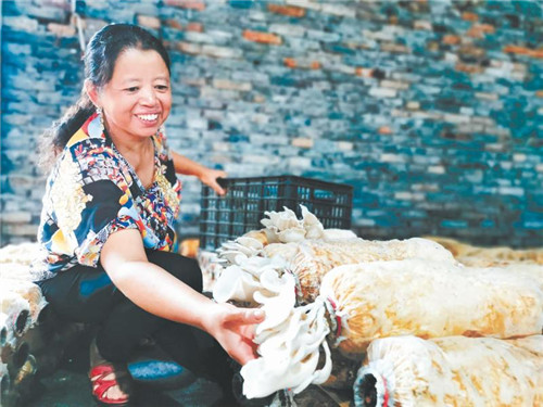 贫困户查看平菇生长情况