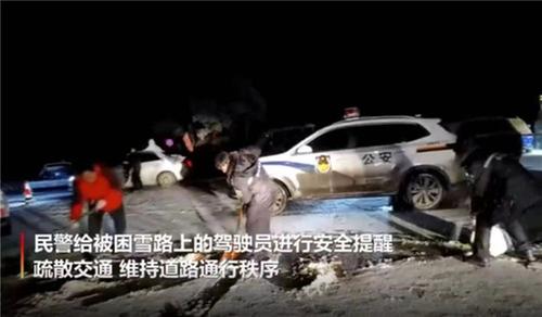 经过多方努力,截止7号凌晨4点,历时10多个小时,被困100多辆车终于离开了冰雪路面,平安下山。“深更半夜的,这么大的雪,还保证我们安全下山,各位民警辛苦了。”一名游客。