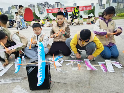 4月6日,广安市岳池县科协组织当地近百名小学生在银城花海、龙湖公园两地开展天府科普研学游活动。