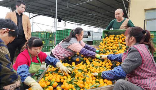 一路走来,合作社的成果让人印象深刻,一颗颗枝叶茂盛的桔子树上面挂满了沉甸甸的果实,村民们正忙碌着采摘、筛选、装箱,一派丰收的景象。