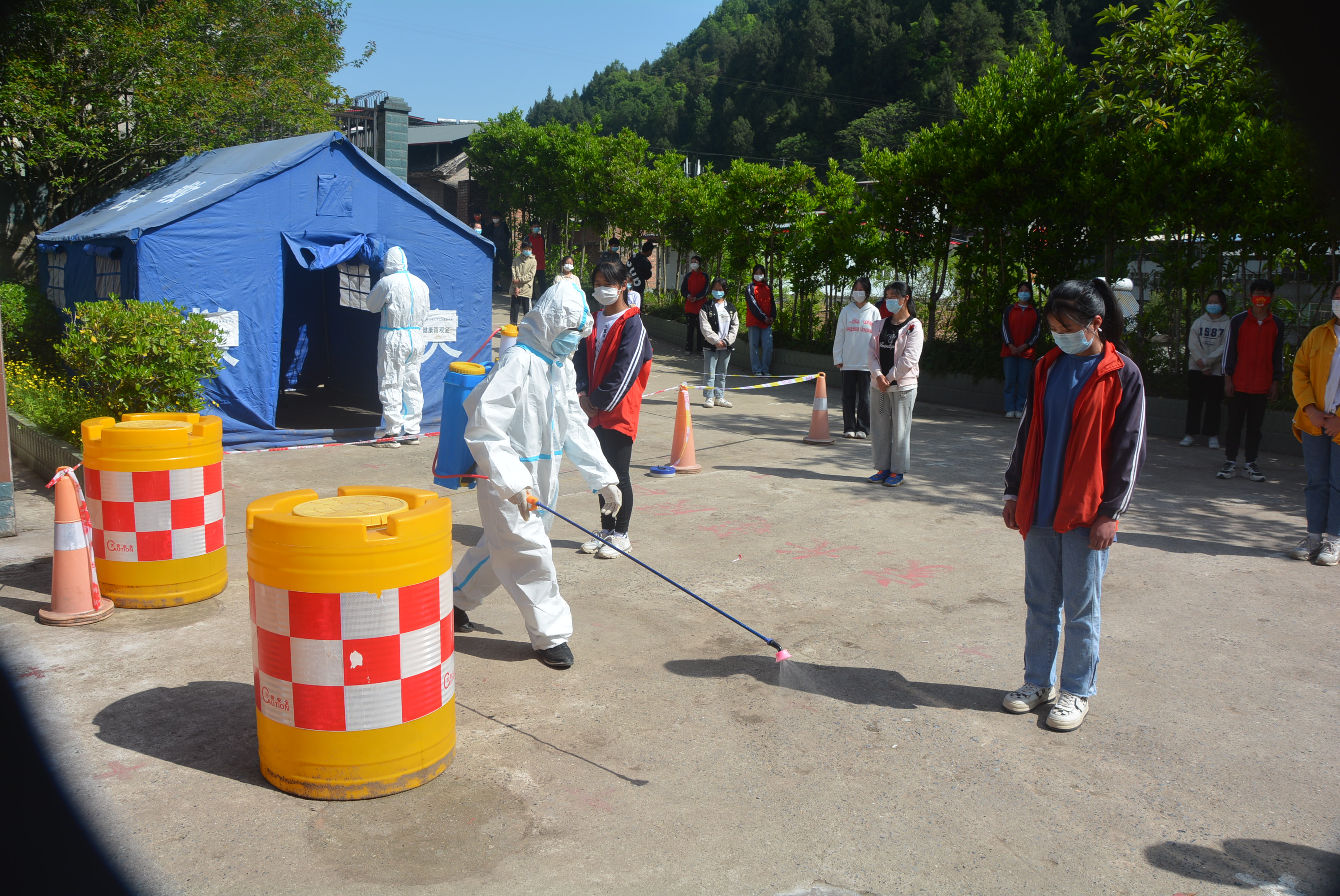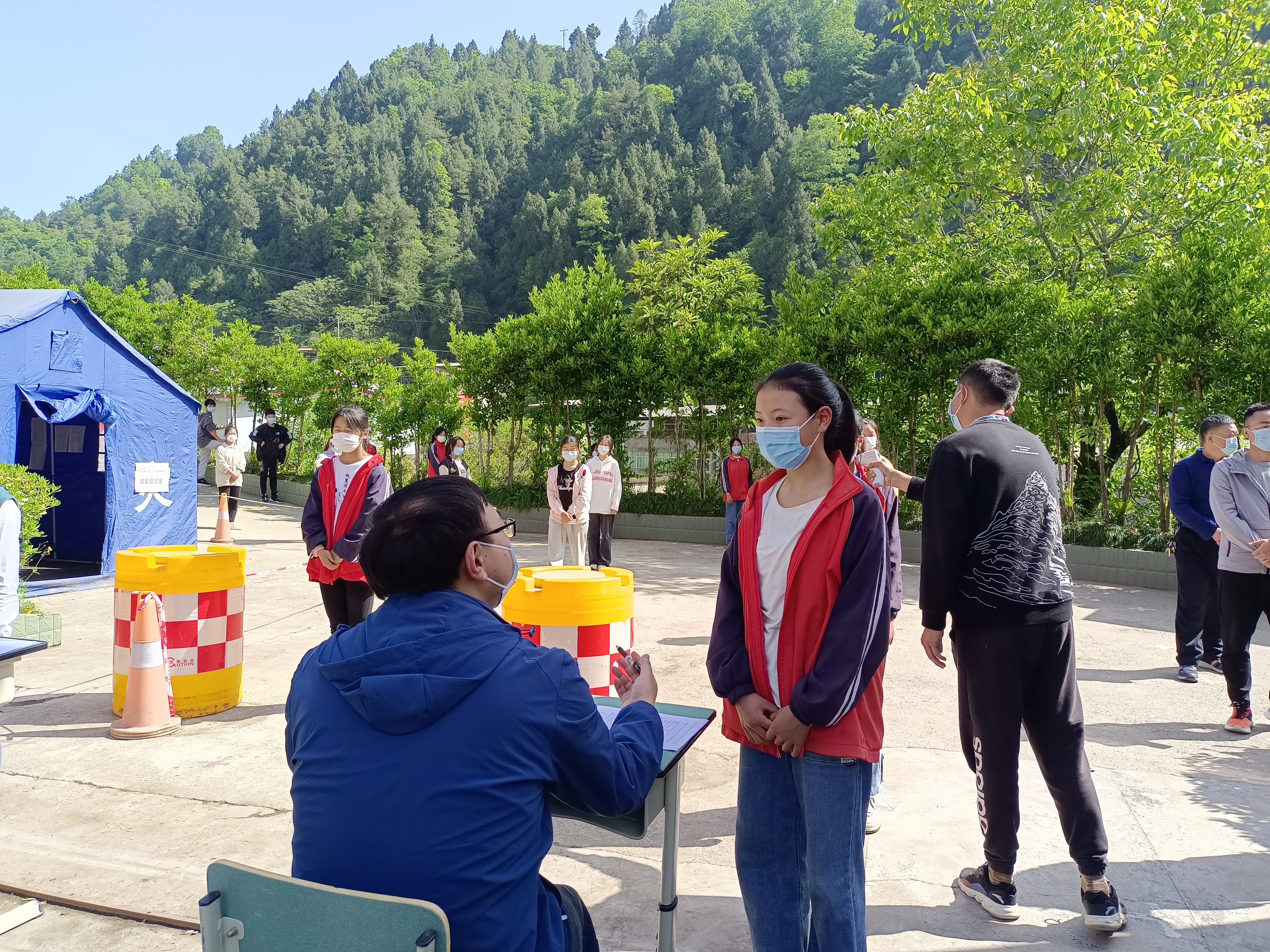 4月21日,巴中市南江县关门镇九义校开展了新冠疫情防控应急演练。此次演练主要模拟了师生返校摸排、校门口出现红码人员和校内出现体温异常人员等情景。