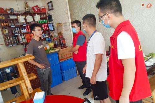 图为镇纪委工作人员现场走访辖区餐饮企业,向经营者了解相关情况