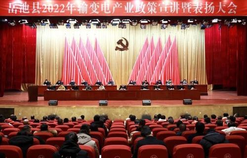 1月16日上午,广安市岳池县2022年输变电产业政策宣讲会暨表扬大会在吴雪艺术中心主会议室召开。