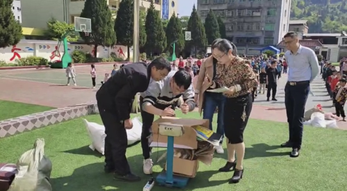 学校通过红领巾广播站、班会、国旗下的讲话、手抄报等多种方式,多渠道对学生进行环保知识普及宣讲,号召全校学生从节约粮食、纸张、水电、钱物做起,营造良好的校园环保教育氛围。同时,举行“一木环保”公益活动的捐赠仪式,将班级废物回收站中收集的学生用过的作业本、废旧报刊等,以班为单位进行捐赠,以此提高师生的环保意识。